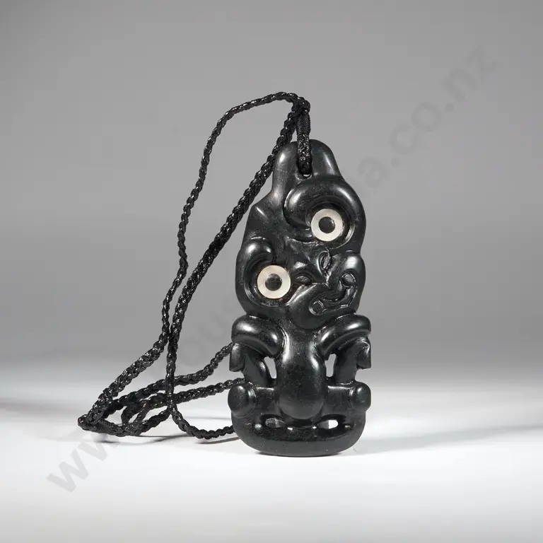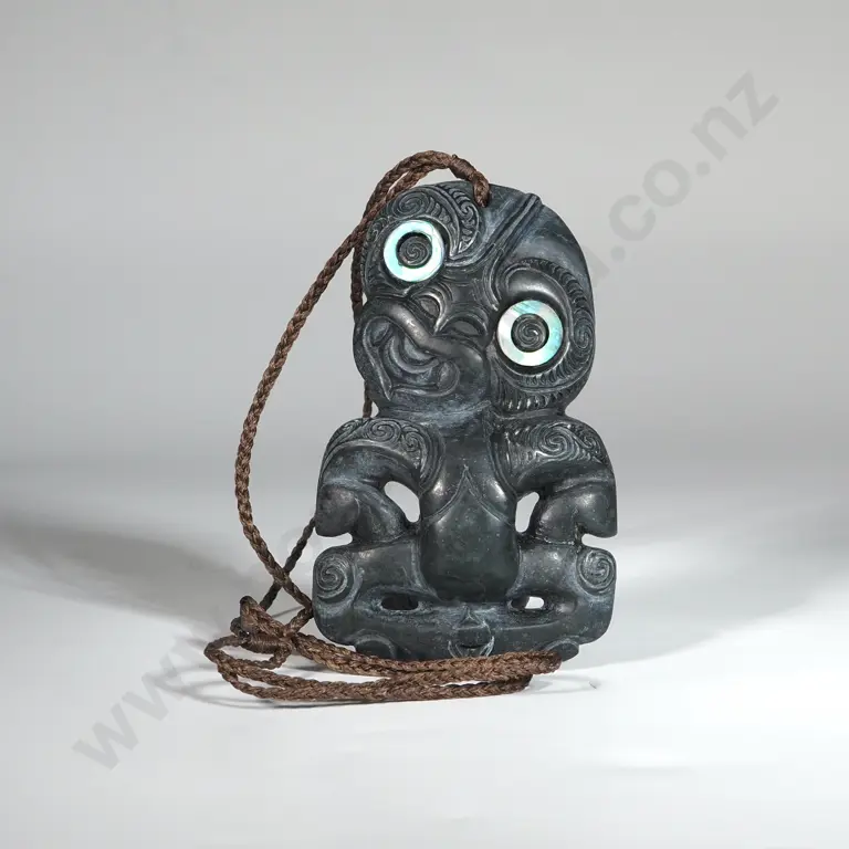 Pounamu Tiki With Plaited Cord 128 x 73mm.