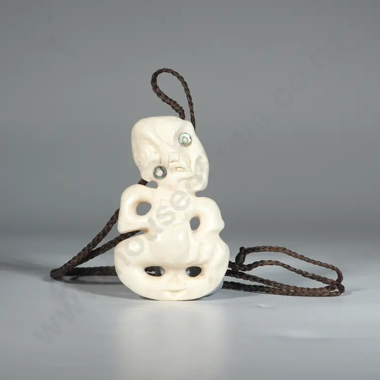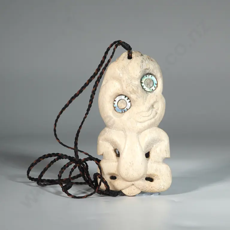 Whalebone Hei Tiki with Plaited Cord. 92 x 52mm