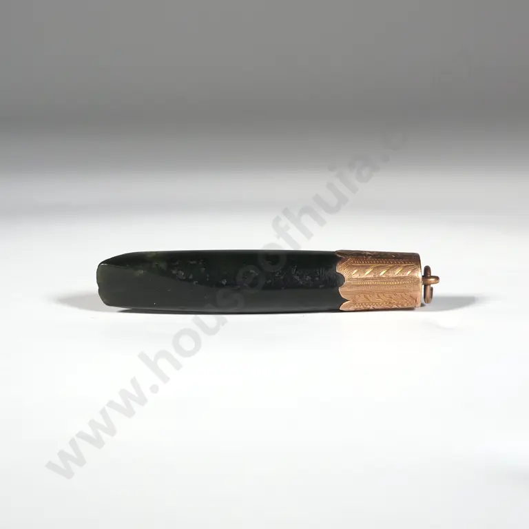 Small Pounamu Whao Chisel Mounted in 9ct Rose Gold as a Fob Pendant Y-22804
