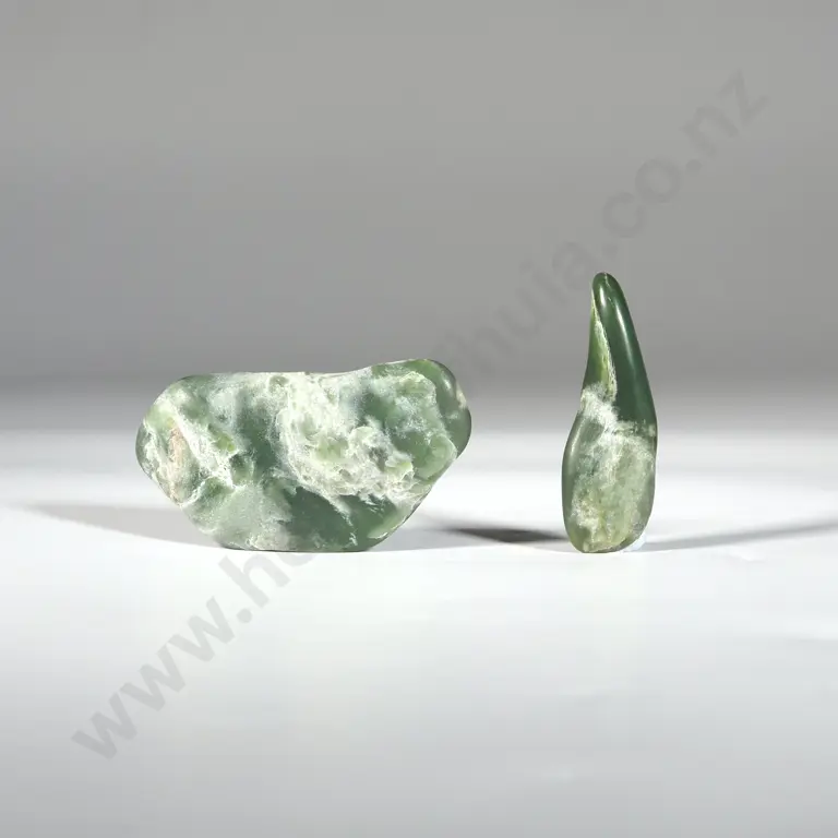 Seth Heron Carved Aotea Lizards with Gold Eyes with Ten Small Aotea Pebbles. 175 x 110 x 55 mm