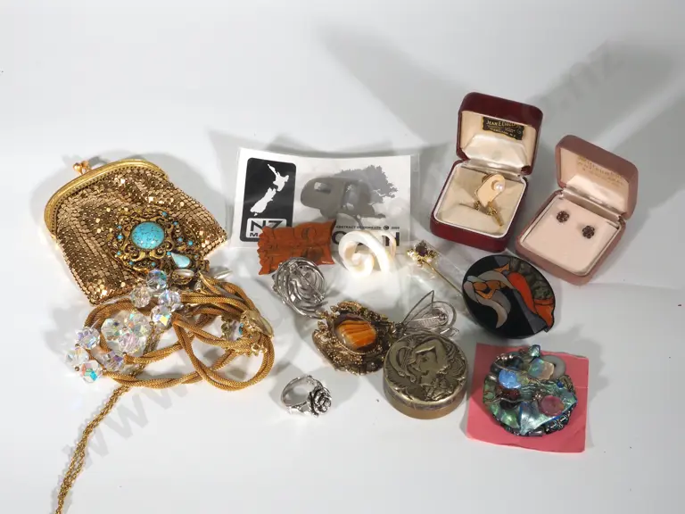 Assorted Costume Jewellery & Vintage Mesh Evening Purse Estimate: $60 - $80