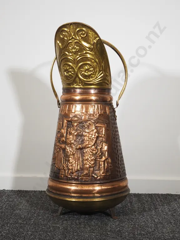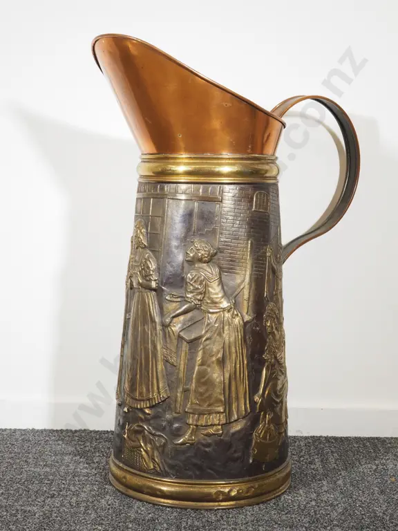 Sizeable Embossed Copper Umbrella Jug: 57cm Tall Estimate: $120 - $180