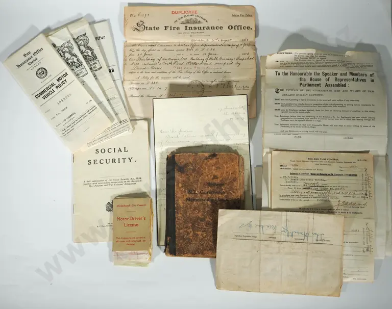 Exceptional Collection of NZ Historical Documents Incl. Insurance Policies, Drivers License, Voting Forms Etc. Estimate: $60 - $80