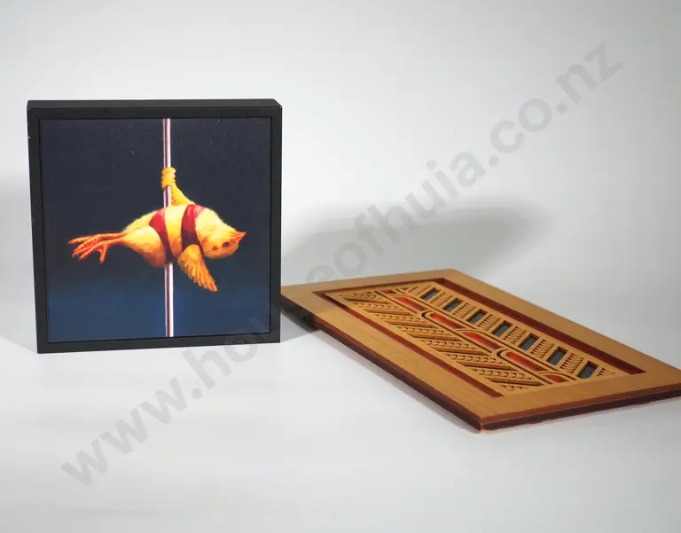 Two Decorative Items incl Kiwiana Carved Wood Panel Estimate: $20 - $40