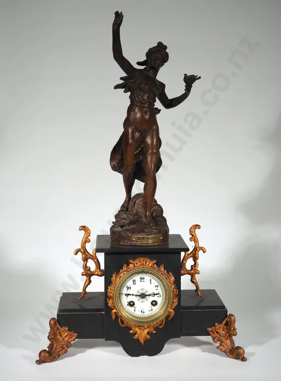 Spelt Heroine Figurine on Marble Clock: 58CM Tall Estimate: $60 - $80