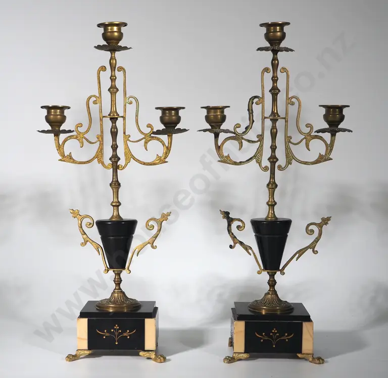 Pair of Highly Ornate Decorative Brass Candelabra on Marble Base Estimate: $80 - $120