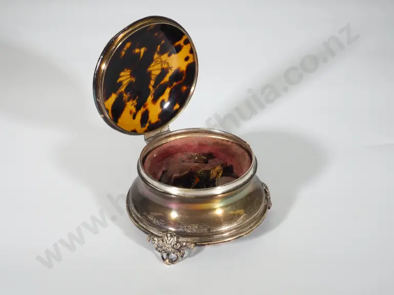 Ornate Sterling Silver & Tortoiseshell Ladies Pin Box (One foot is not present) Estimate: $60 - $80