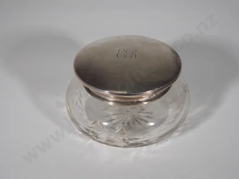 Antique Cut Glass Sterling Silver Dressing Table Jar: Birmingham 1924 Estimate: $120 - $160