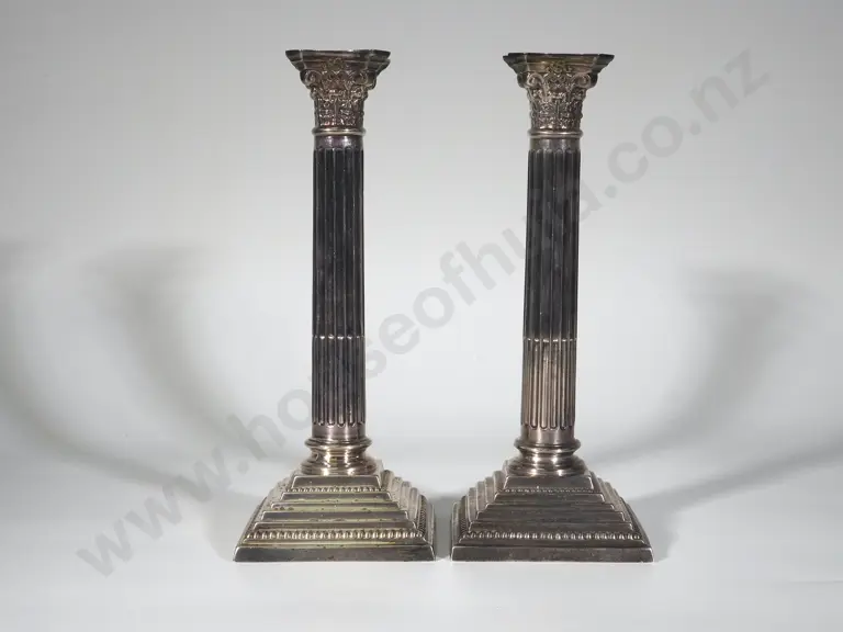 Substantial Pair of Sterling Silver Corinthian Column Candlesticks: Birmingham 1951 and 1952 - Weighted Bases Estimate: $600 - $800