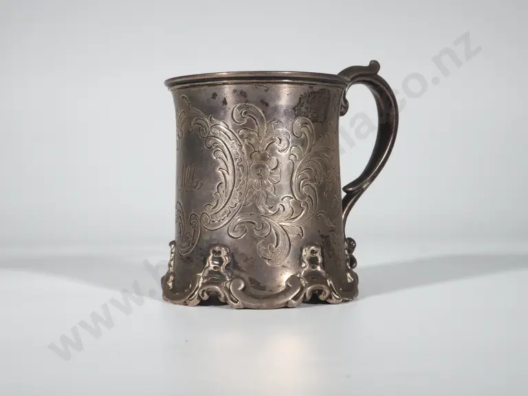 Highly Decorative Antique Sterling Silver Engraved Christening Mug: London 1845 - 137 grams Estimate: $300 - $400