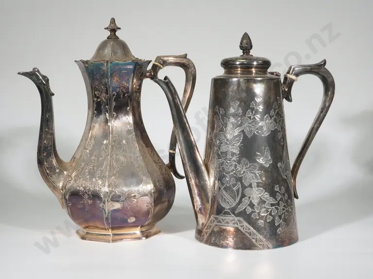 Two Exceptional Floreat Engraved Antique Silver Plate Coffee Pots Estimate: $60 - $80