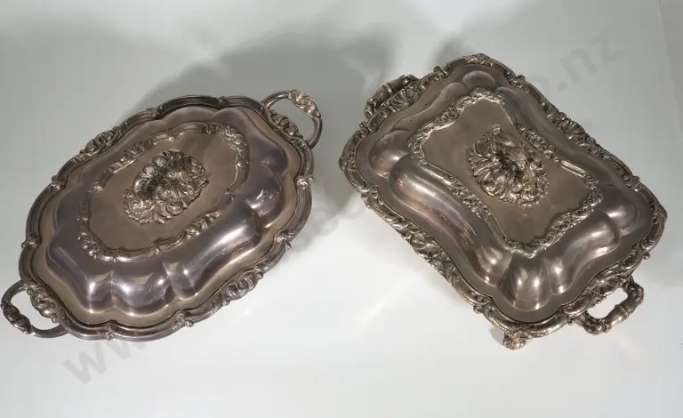 Two Ornate Silver Plate Food Warming Tureens Estimate: $80 - $120