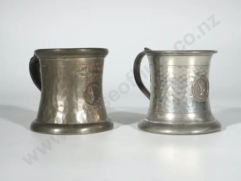 1937 & 1957 Coronation Commemorative Pewter Mugs Estimate: $40 - $60