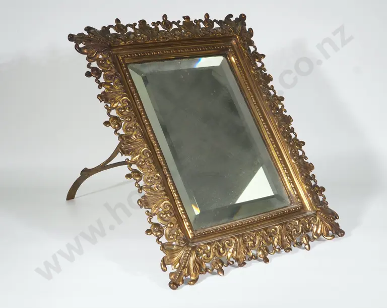 Ornate Brass Frame w Bevelled Glass Mirror w Rear Stand Estimate: $80 - $120