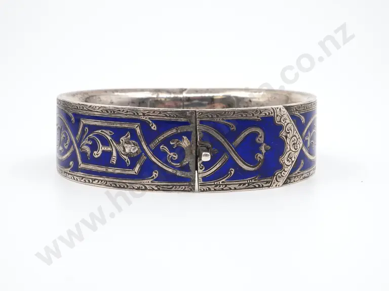 Exquisite Sterling Silver Detailed Blue Enamel Snap Bracelet Estimate: $180 - $250