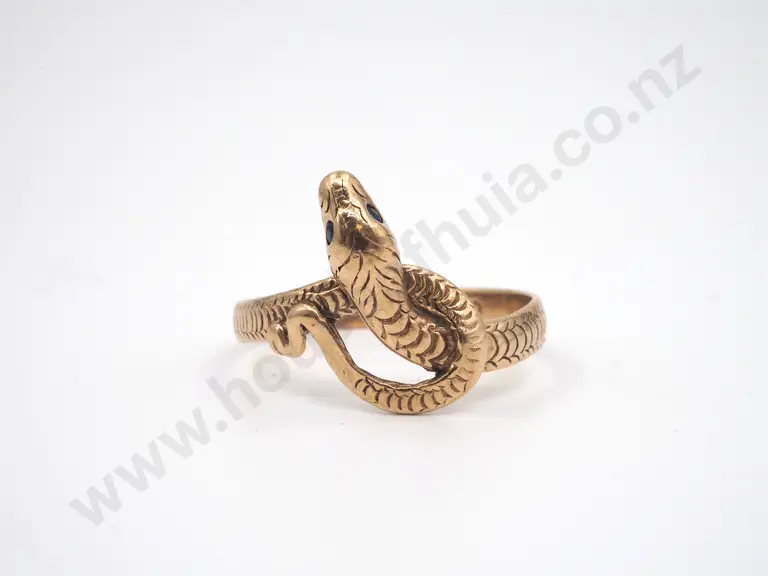 9ct Gold Vintage Detailed Coiled Snake Ring w/ Gem Set Eyes Estimate: $300 - $500