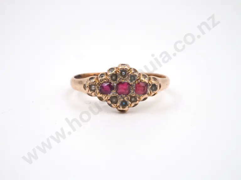 15ct Gold Antique Seed Pearl & Ruby Ring, Hallmarked Estimate: $250 - $350