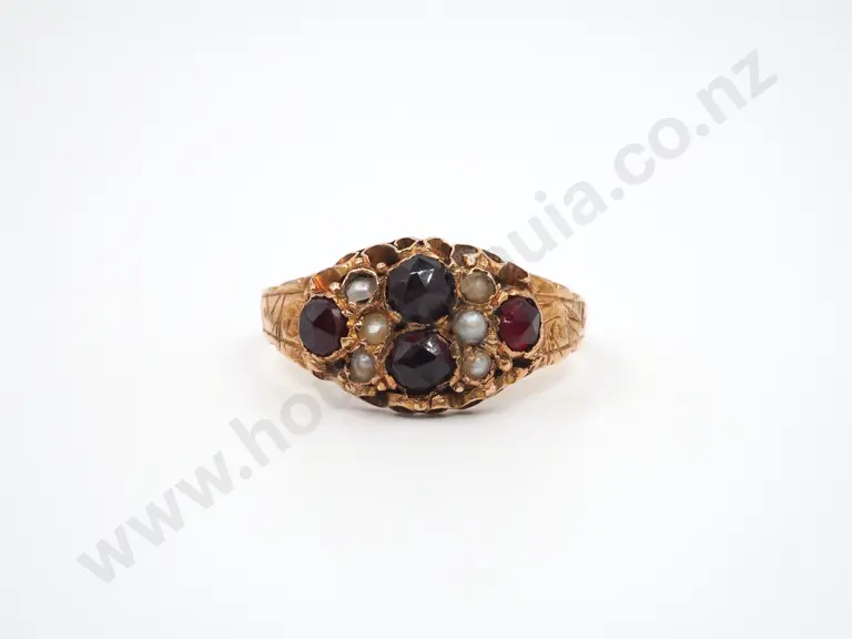 15ct Gold Antique Garnet & Seed Pearl Ring Estimate: $450 - $550