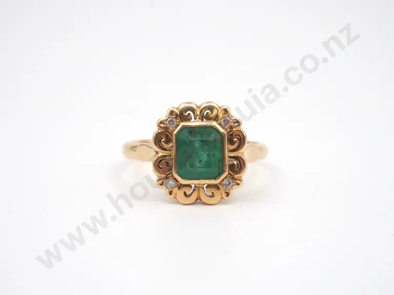 18ct Gold Emerald & Diamond Ring Estimate: $400 - $500
