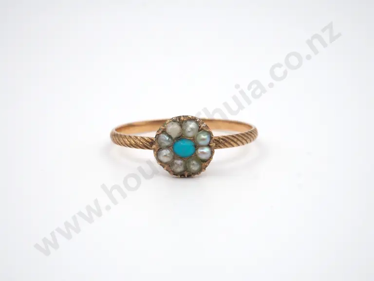 9ct Gold Antique Turquoise & Seed Pearl Ring Estimate: $180 - $220