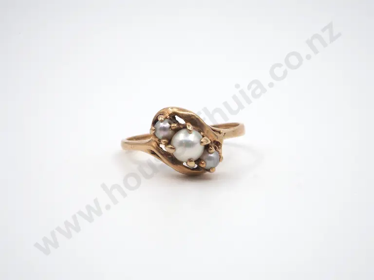 9ct Gold Vintage Three Pearl Ring Estimate: $180 - $220