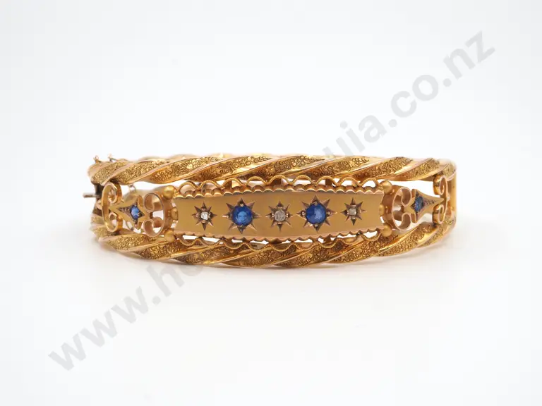 9ct Gold Antique Diamond & Sapphire Snap Bangle, Circa 1910 Estimate: $1,000 - $1,400