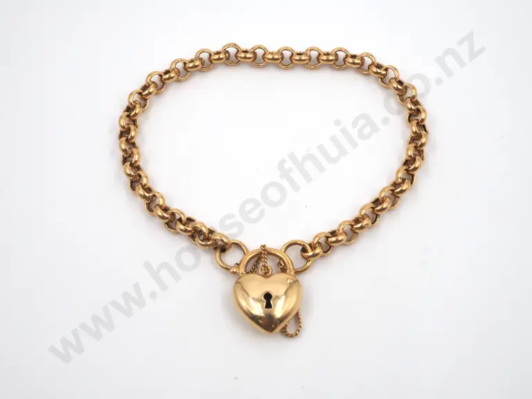 9ct Gold Clasp Bracelet w/ Heart Shaped Padlock Estimate: $300 - $500