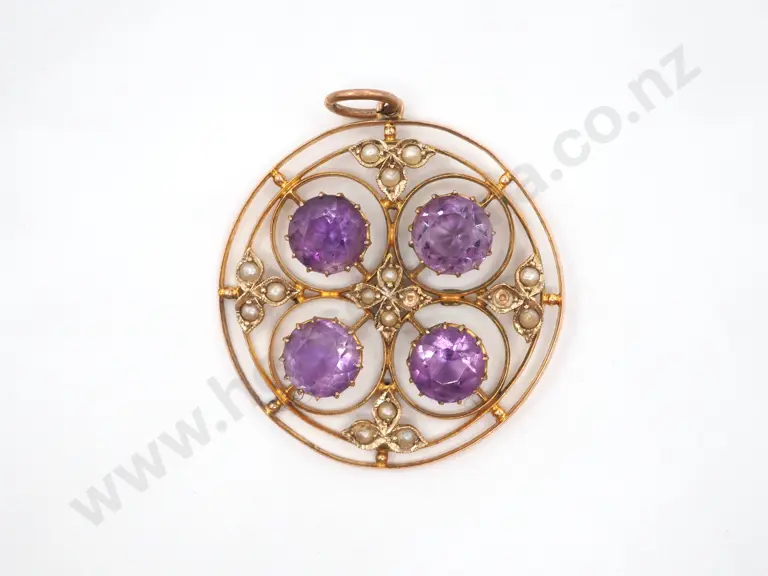 9ct Gold Edwardian Amethyst & Seed Pearl Pendant Estimate: $300 - $500