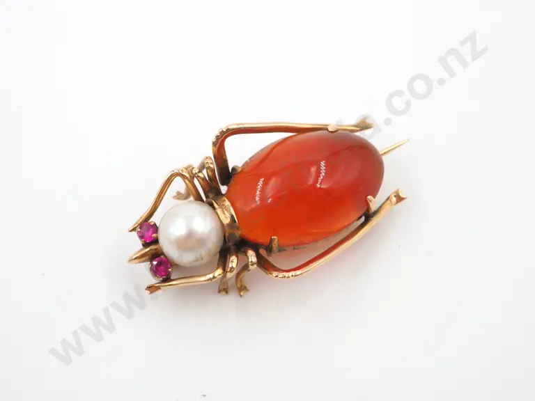 14ct Gold Antique Cabochon Agate & Pearl Beetle Brooch Estimate: $600 - $800