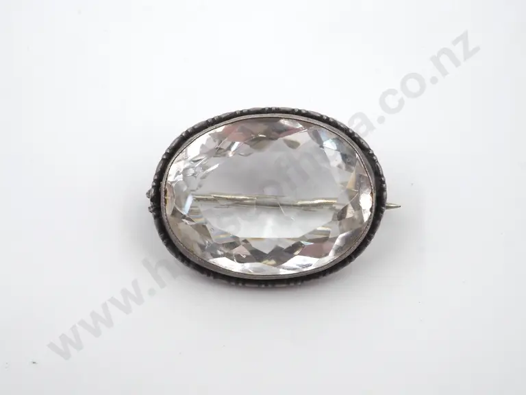 Antique Sterling Silver Large Faceted Crystal Brooch Estimate: $80 - $120