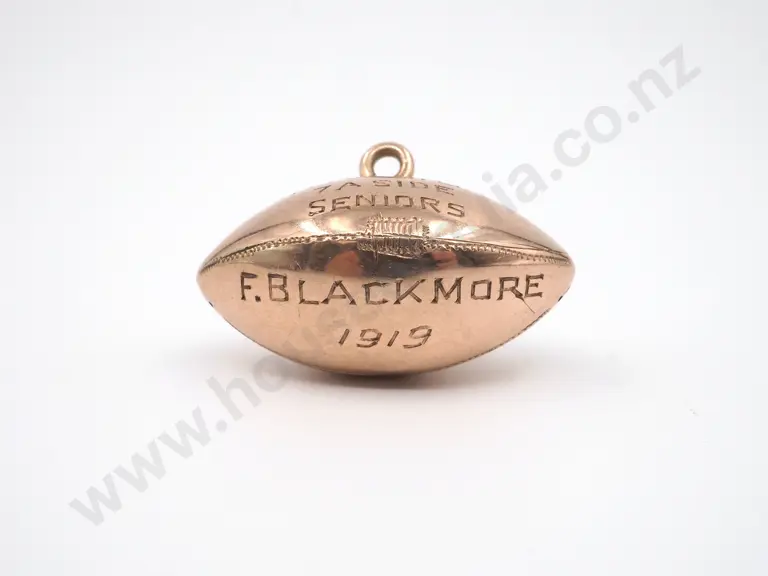 9ct Rose Gold Antique Rugby Ball; A.C.R.U 7 Aside Seniors F. Blackmore, 1919 Estimate: $400 - $600
