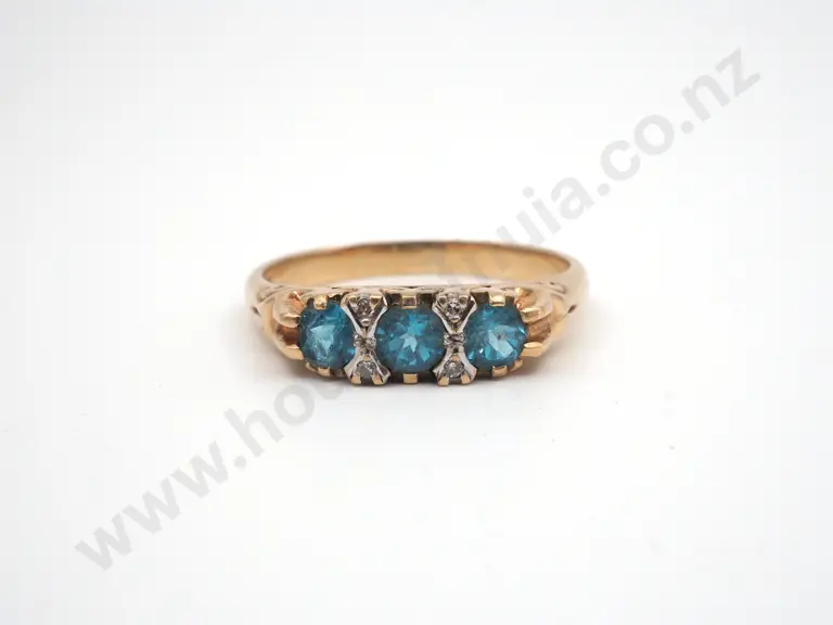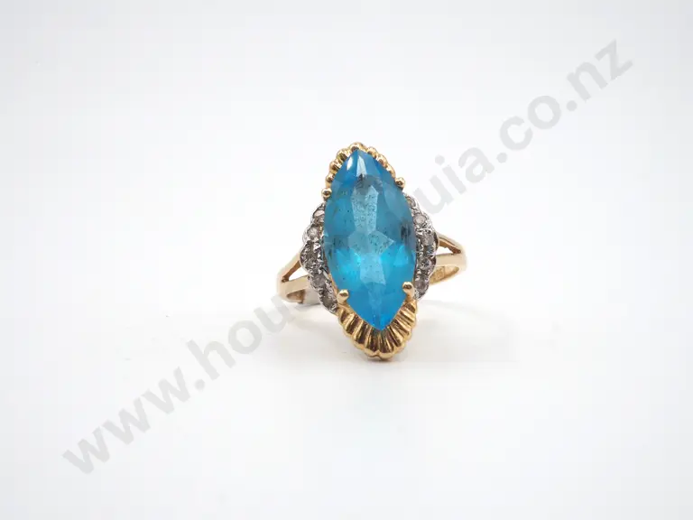 14ct Gold Diamond & Marquise Cut Blue Gem Ring Estimate: $450 - $650
