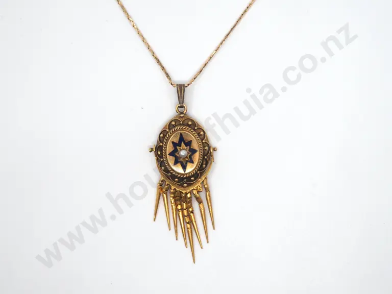 15ct Gold Antique Enamelled Tasseled Pendant with Seed Pearl on 14ct Gold Chain Estimate: $600 - $800