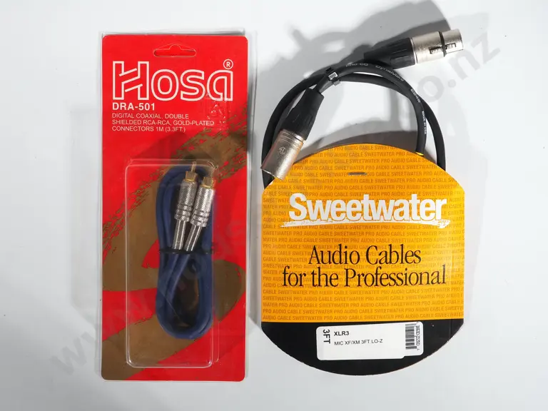 Two Hosa Digital Coaxial Double RCA-RCA Connectors DRA-501; Sweetwater XLR3 Audio Cable