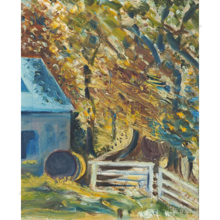 Farm Scene. Fisher & Son Gallery Sticker on the Back.