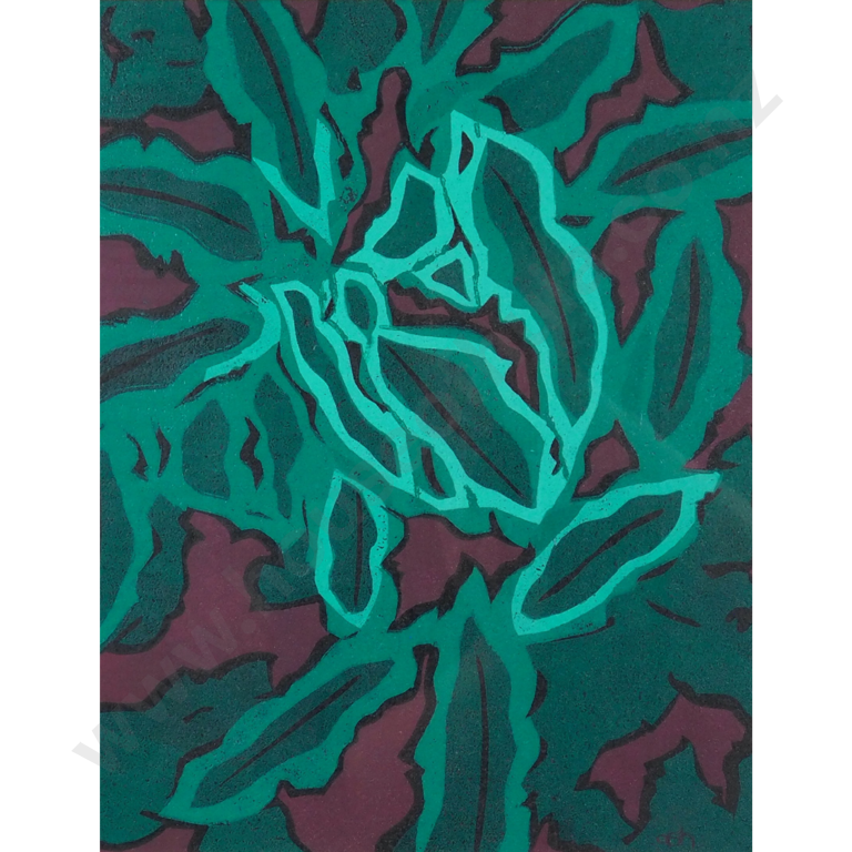 Shodo Kawarazaki. 1889-1973. Japanese Silver-leaf Wood Block Print.