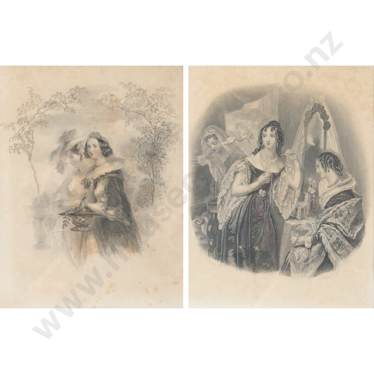 Pair of Antique Lithographs. Young 18/19 Century Young Women.