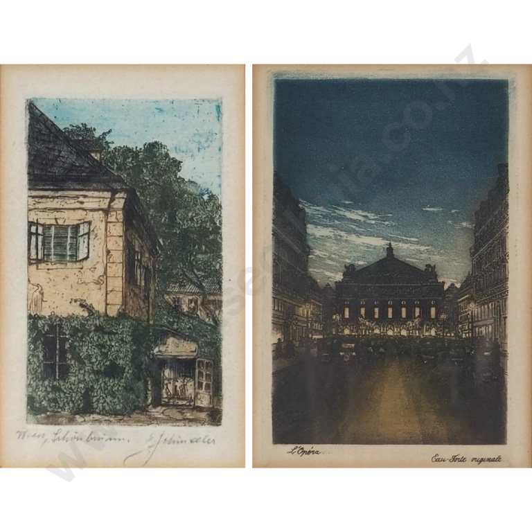 Pair of Hand Coloured Etchings. Opera House, Paris & Farm House