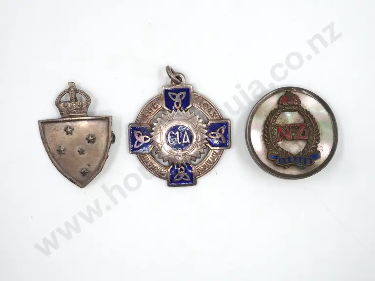 Two WW2 New Zealand Sweetheart Badges & Silver Religious Badge Estimate: $80 - $100