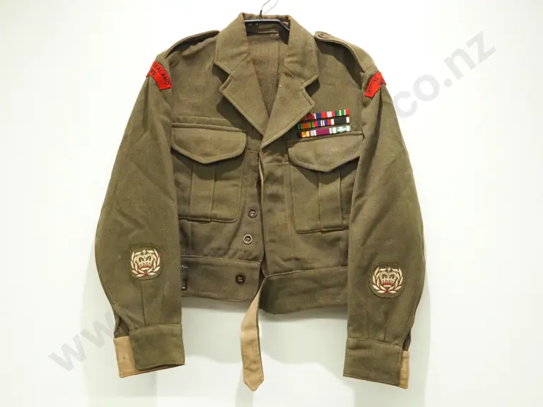 1957 Dated Army Battledress Jacket: WW2 & Vietnam Ribbon Bar - RNZ Engineers Warrant Officer Estimate: $80 - $120