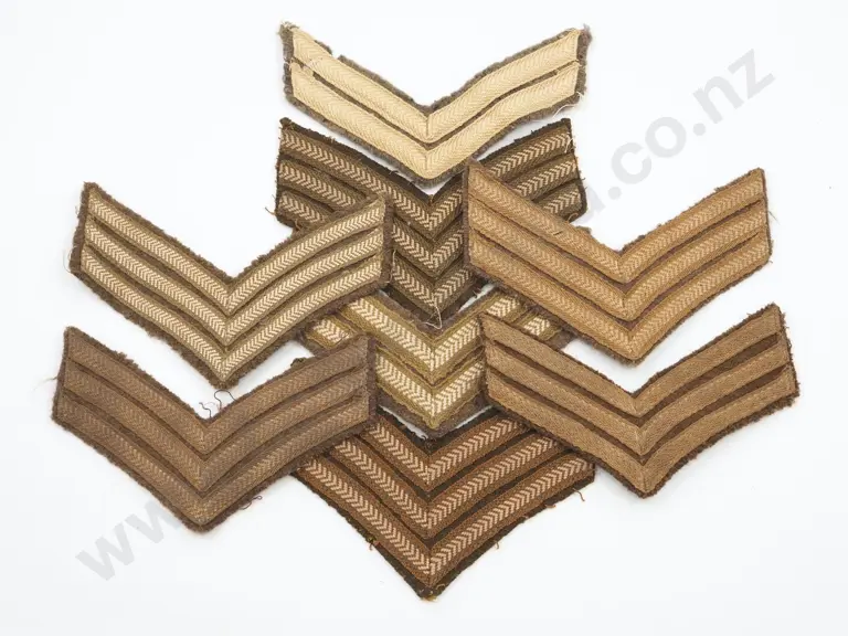 Eight WW2 New Zealand Cloth Rank Titles: Six Sergeant & Two Corporals Estimate: $20 - $40