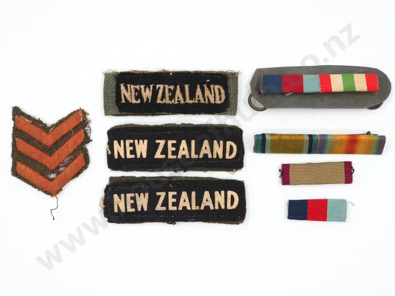 Assorted Lot of WW2 New Zealand Cloth Patches & Medal Ribbons Estimate: $30 - $50