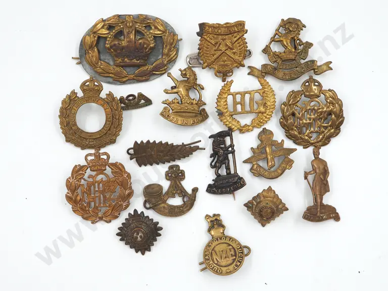 Assorted lot of WW1 New Zealand Cap & Collar Badges Estimate: $30 - $50