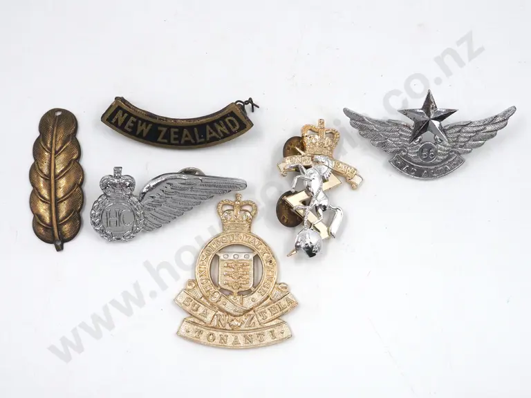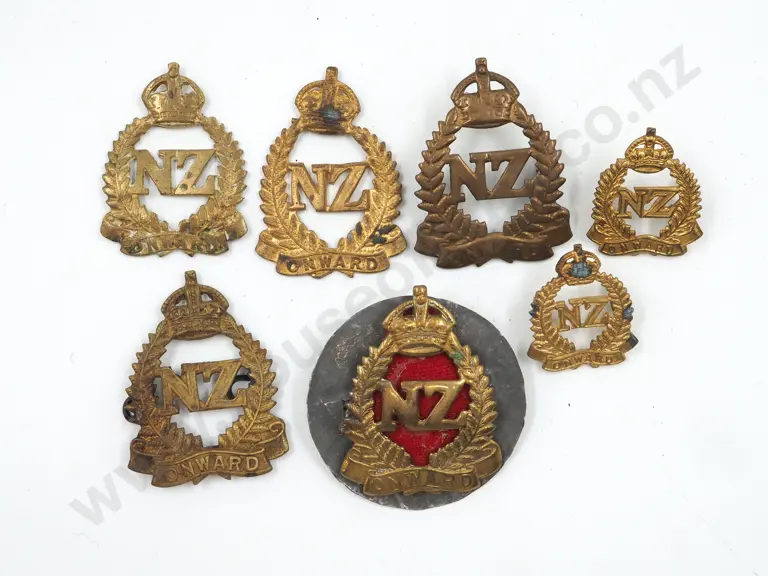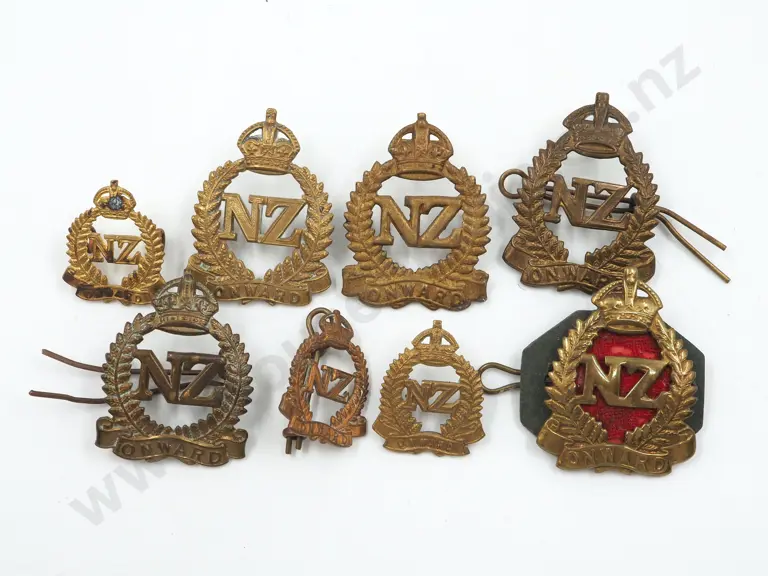 Assorted WW2 New Zealand Onward Cap & Collar Badges Estimate: $30 - $50
