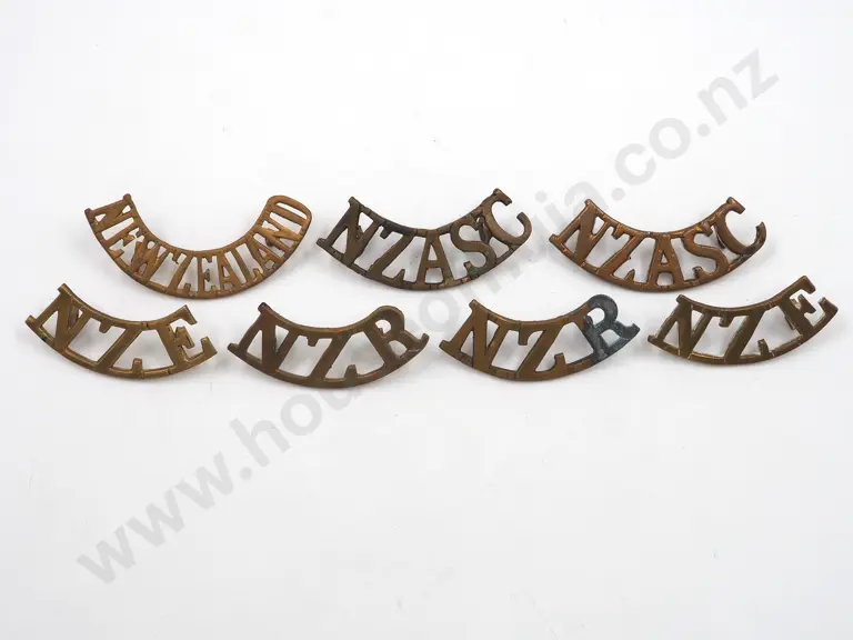 Assorted lot of Eight New Zealand Brass Shoulder Titles Estimate: $40 - $60