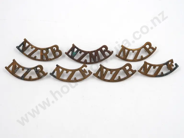 Assorted lot of Seven New Zealand Brass Shoulder Titles Estimate: $40 - $60