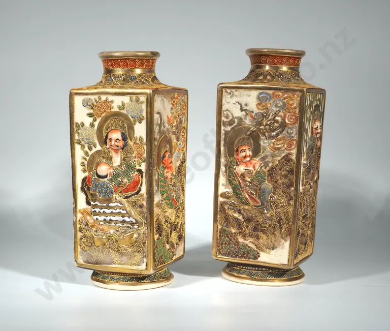 Large Pair of Satsuma Vases of Square Form. Hgt 310mm Estimate: $150 - $250