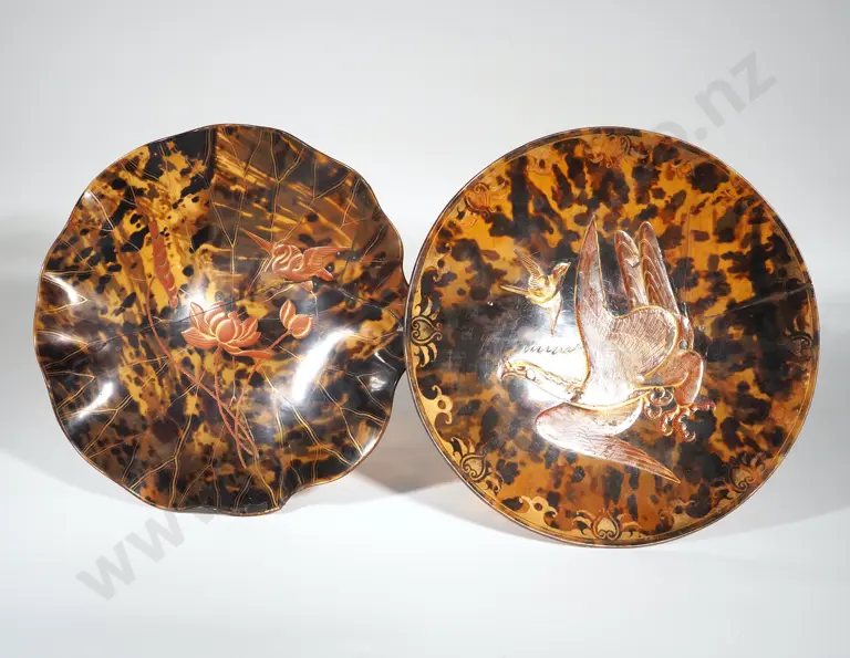 Two Repaired Faux Tortoiseshell Asian Style Chargers Estimate: $20 - $40