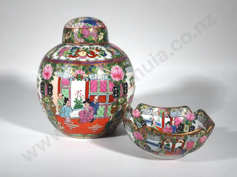 Decorative Cantonese Enamel Style Oriental Ginger Jar & Bowl Estimate: $80 - $100