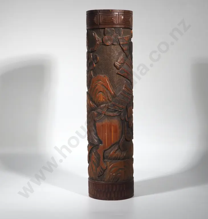 Carved Cylindrical Bamboo Vase with Carved Oriental Decoration Estimate: $40 - $60